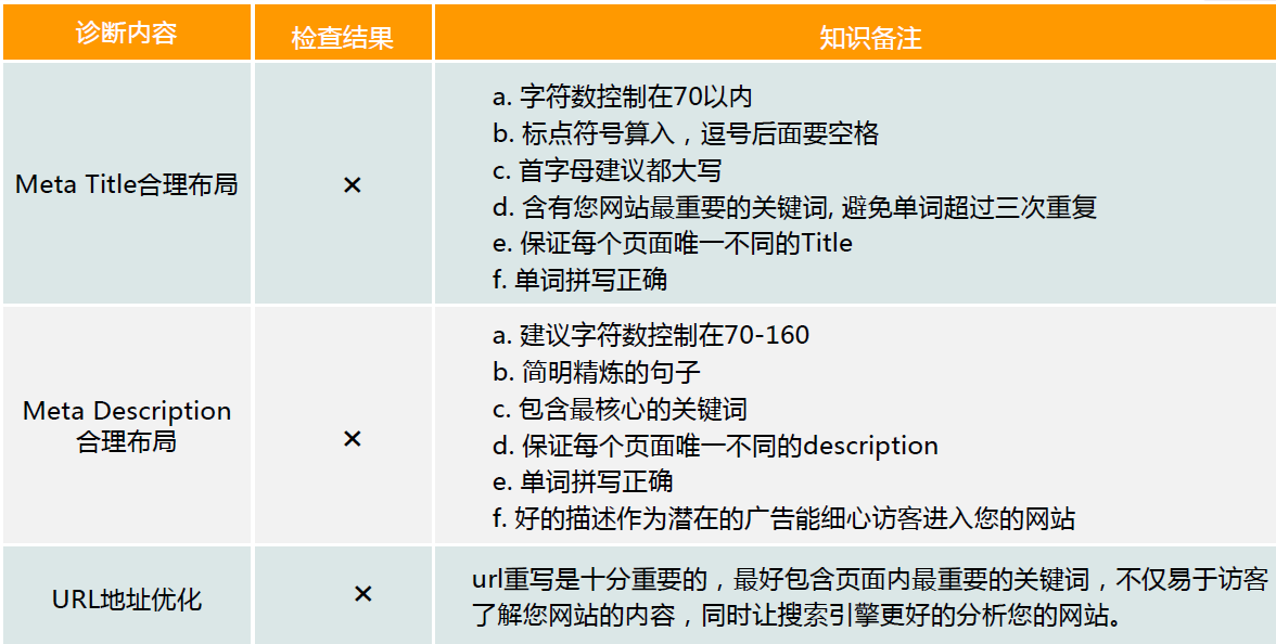 包括網(wǎng)站的域名年限、域名是否有被懲罰,空間性能是否好到足夠支撐目標關(guān)鍵詞的排名,空間的服務(wù)器所在地域等基礎(chǔ)檢測。我們一般會選擇離網(wǎng)站的目標市場盡可能近的服務(wù)器空間。
